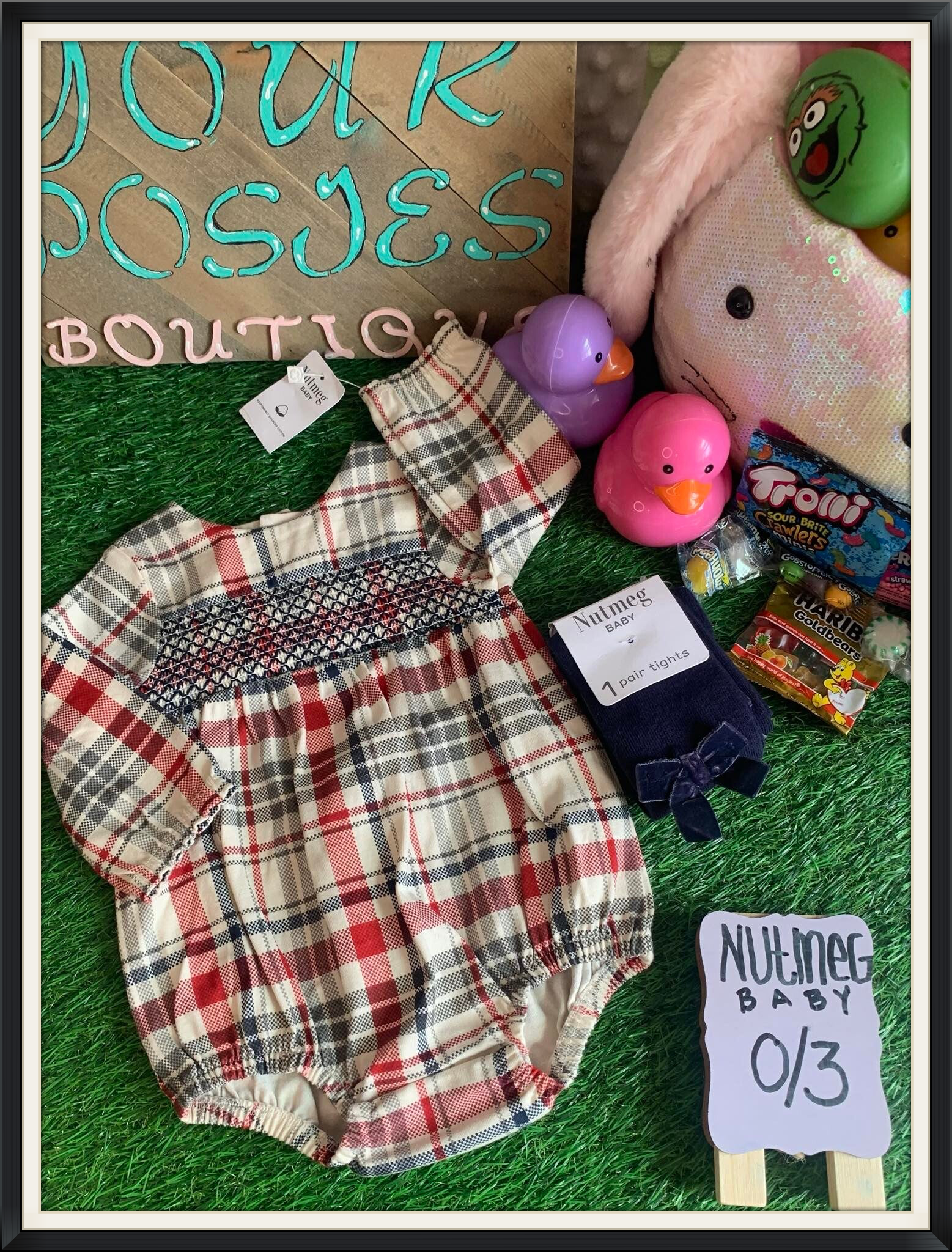 This cute 0/3 romper with matching tights comes from over seas and the quality of this piece is unmatched.
